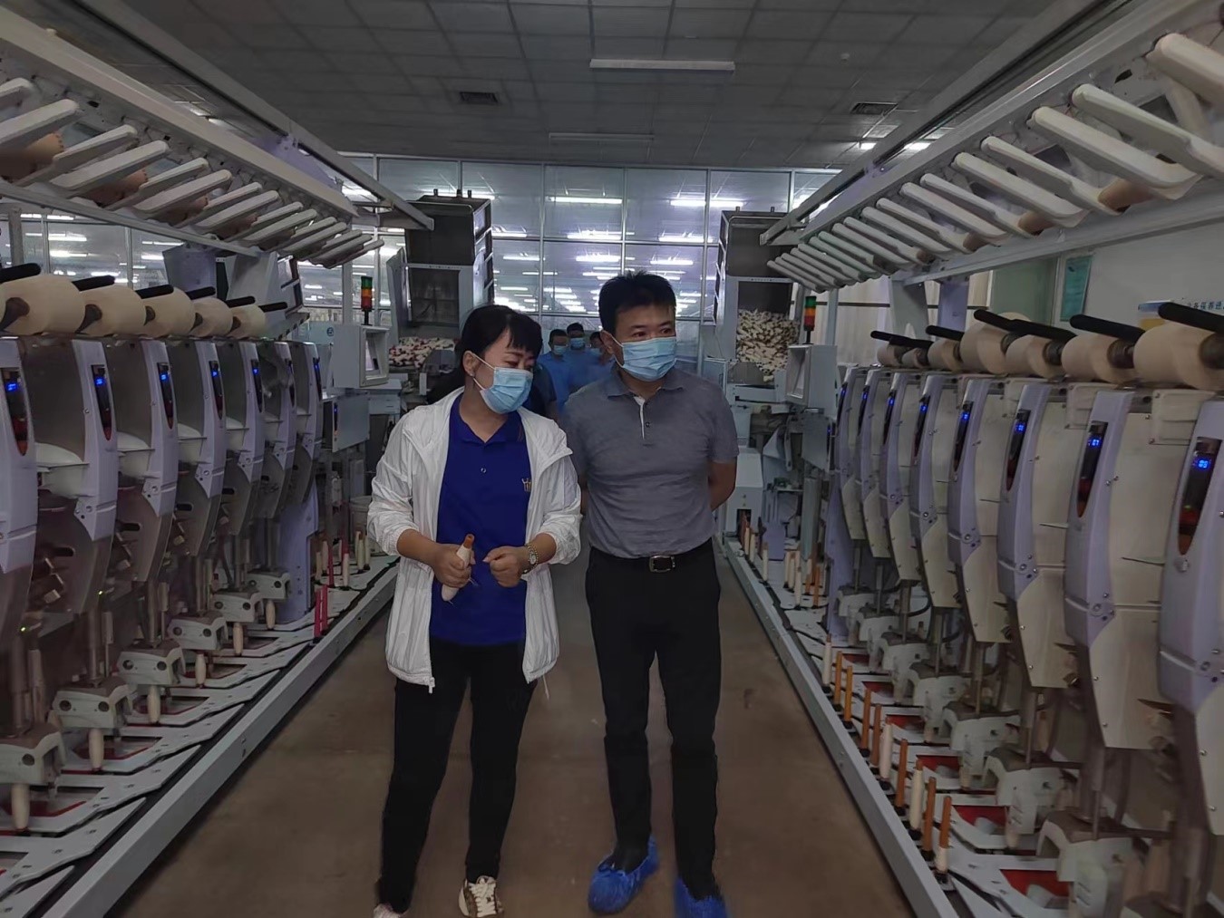 盧剛首先到元首紡織生產(chǎn)車間實地查看了環(huán)錠紡、賽絡(luò)紡、轉(zhuǎn)杯紡等各條生產(chǎn)線生產(chǎn)運(yùn)行情況,詳細(xì)了解了公司經(jīng)營情況和轉(zhuǎn)型升級舉措,并對公司的未來發(fā)展方向提出積極地建設(shè)性意見。