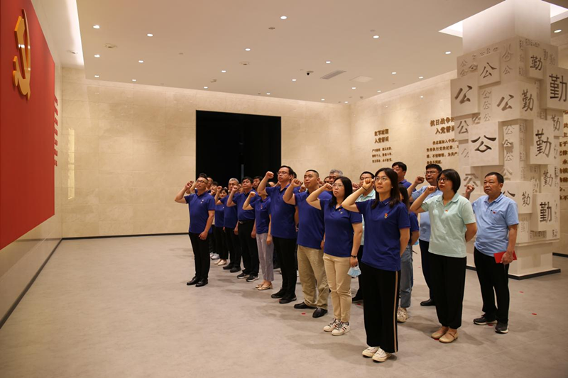 在講解員的引導(dǎo)下,參觀人員依次參觀學(xué)習(xí)了“不忘初心、牢記使命”序廳、“加強紀律性 革命無不勝”第一主展廳、“全面從嚴治黨在山東”第二主展廳和警示教育專題展廳。實物展示層次感豐富,圖文影像科技感十足,現(xiàn)場講解聲情并茂,充分體現(xiàn)了黨中央、山東省委在黨的紀律建設(shè)上作出的偉大成就。在警示教育基地,近年來發(fā)生的各層級人員嚴重違紀違法典型案例直擊內(nèi)心,給參觀人員上了一堂深刻的廉政教育課。參加活動的全體黨員干部面向黨旗,重溫入黨誓詞,回顧初心錚錚有聲,許下堅守使命的承諾。