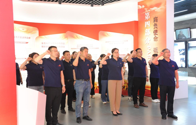 在宣誓廳,全體黨員干部面對鮮紅的黨旗,莊嚴宣誓,重溫入黨誓詞,深刻領會共產(chǎn)黨人的初心使命,進一步堅定了理想信念。