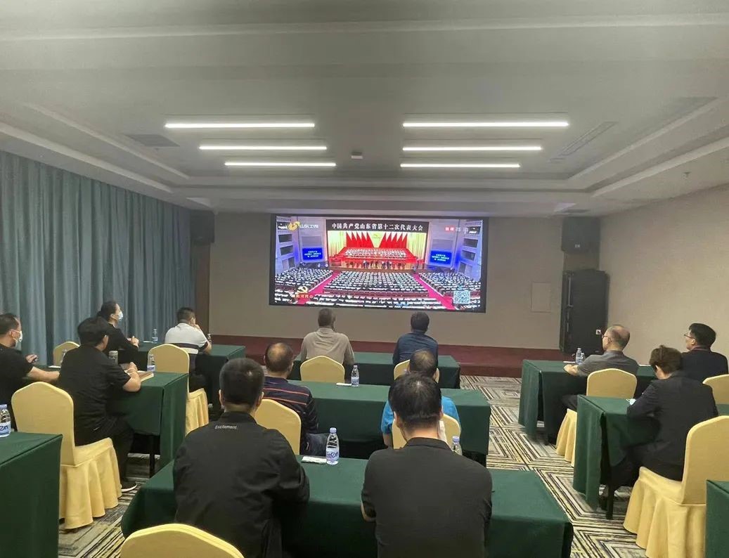 5月28日至6月1日,中國共產(chǎn)黨山東省第十二次代表大會(huì)在濟(jì)南召開。28日上午9時(shí),濟(jì)南產(chǎn)發(fā)集團(tuán)組織廣大黨員干部群眾收聽收看開幕式實(shí)況。集團(tuán)領(lǐng)導(dǎo)班子、集團(tuán)總部各部室負(fù)責(zé)人及部分直屬企業(yè)黨政負(fù)責(zé)人集中收看學(xué)習(xí),各直屬企業(yè)(單位)以支部為單位,共計(jì)2000余人收聽收看省黨代會(huì)實(shí)況。